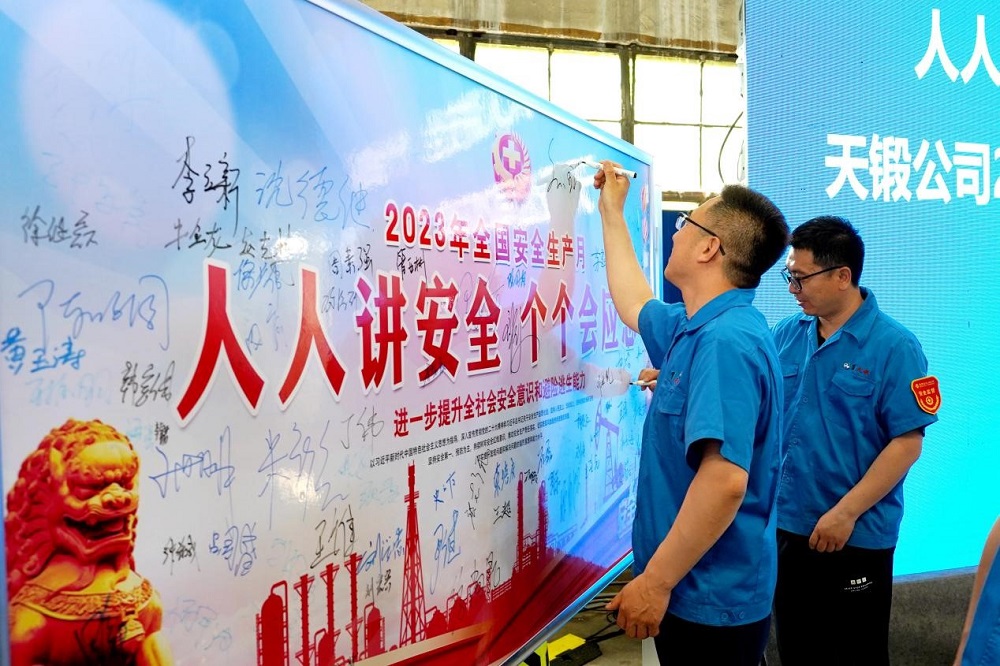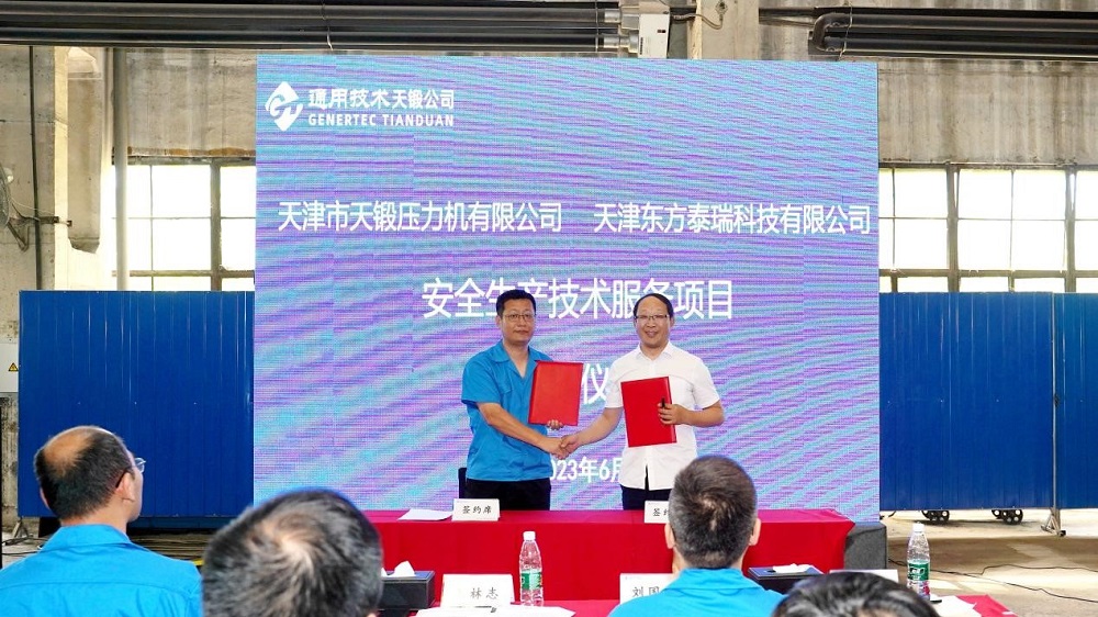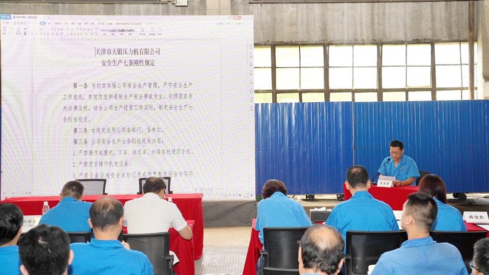6月6日上午,天鍛公司在機(jī)加工車間舉行2023年“安全生產(chǎn)月”活動(dòng)啟動(dòng)大會(huì)。副總經(jīng)理張敬波主持會(huì)議,宣讀了天鍛公司2023年“安全生產(chǎn)月”活動(dòng)總體實(shí)施方案和重大事故專項(xiàng)排查整治行動(dòng)方案??偨?jīng)理劉林志宣讀了《天鍛公司安全生產(chǎn)七條剛性規(guī)定》,并代表公司與天津東方泰瑞科技有限公司簽署了安全生產(chǎn)咨詢服務(wù)合同。