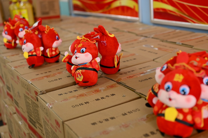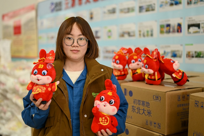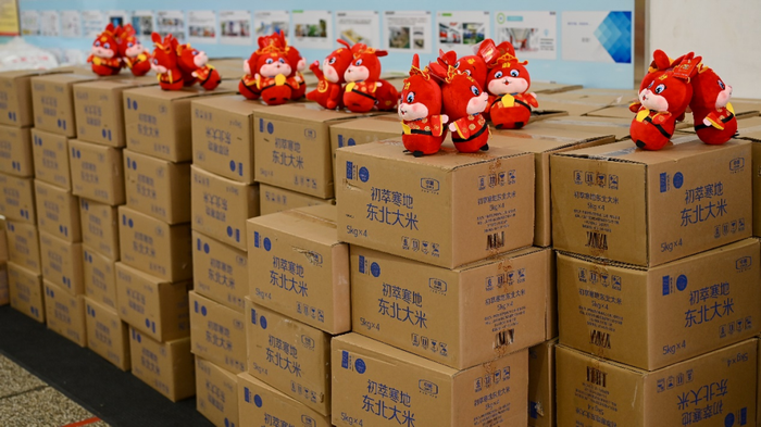 春節(jié)“福袋”福利多多,不僅有福臨門(mén)寒地東北大米、初萃多用途麥芯面粉、花生油和堅(jiān)果禮盒,還有兩只活潑可愛(ài)的兔子玩偶。