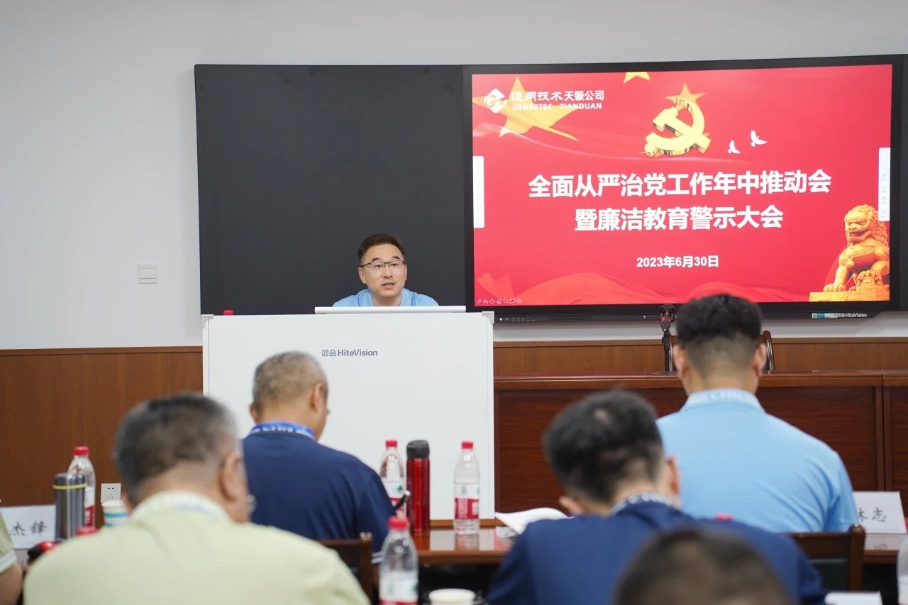 在專題黨課之后,紀委書記蘇杰鋒主持召開了公司全面從嚴治黨工作年中推動會暨廉潔教育警示大會。會上,黨委副書記盧東領(lǐng)學了從嚴治黨有關(guān)文件材料,大家集體觀看了警示教育專題片。劉國福代表公司黨委與領(lǐng)導班子成員、各單位負責人、基層黨組織負責人進行了集體談話,強調(diào)公司要堅定不移推進全面從嚴治黨,為創(chuàng)建世界一流企業(yè)營造風清氣正的干事創(chuàng)業(yè)環(huán)境,要求各單位、各基層黨組織負責人發(fā)揮示范引領(lǐng)作用,做好本單位管黨治黨工作,做到清靜、干凈,知敬畏、有境界,不去想、不去做得不償失、悔之晚矣的事。