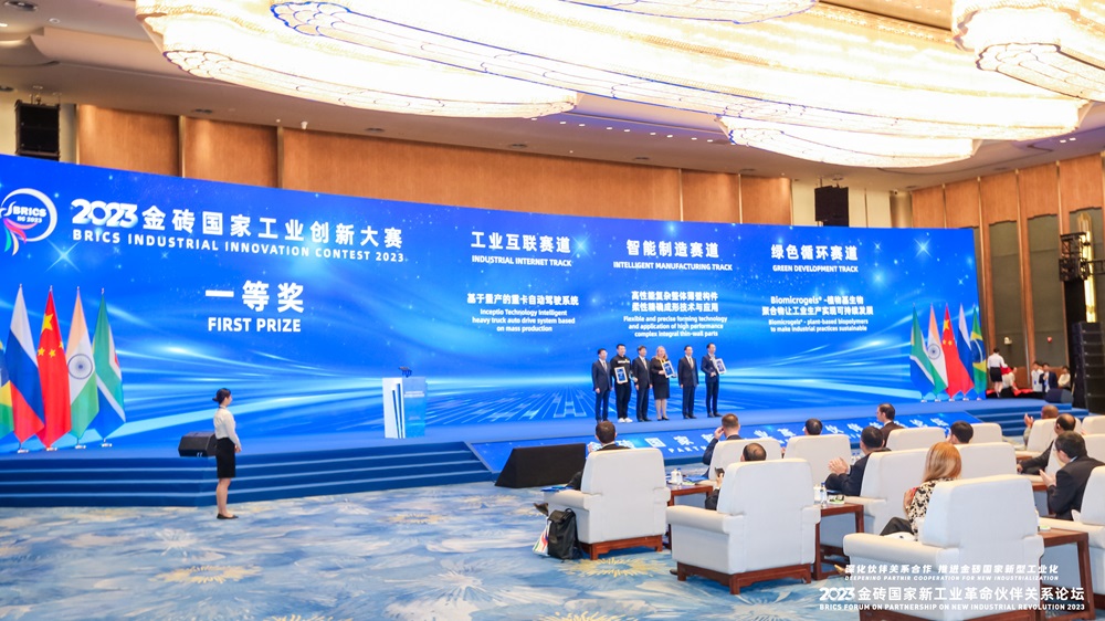 為深入貫徹習近平總書記在金磚國家領(lǐng)導(dǎo)人第十四次會晤上的重要講話精神,進一步落實伙伴關(guān)系工作計劃,積極促進新工業(yè)革命領(lǐng)域人才培養(yǎng)和能力建設(shè),工業(yè)和信息化部與福建省人民政府于7月份正式啟動2023 金磚國家工業(yè)創(chuàng)新大賽。大賽以“深化伙伴關(guān)系合作 推進金磚國家新型工業(yè)化”為主題,設(shè)置了工業(yè)互聯(lián)、智能制造、綠色循環(huán)三個比賽領(lǐng)域。大賽共吸引了海內(nèi)外1346個項目參賽,其中,“智能制造”領(lǐng)域為425個。經(jīng)過境內(nèi)外專家評審和組委會審議,每個比賽領(lǐng)域最終遴選出一等獎1名、二等獎2名、三等獎3名。