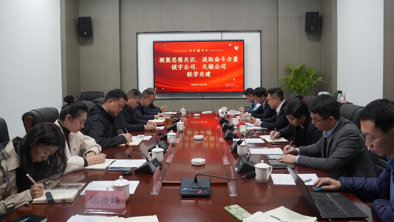 公司領(lǐng)導(dǎo)一行來到湖南鎂宇科技公司溝通交流有關(guān)項目進展情況,并與鎂宇公司聯(lián)合開展了“凝聚思想共識、汲取奮斗力量”主題教育黨課,深入理解習(xí)近平新時代中國特色社會主義思想的世界觀和方法論,積極研討如何貫徹落實總書記對新時代新征程國資央企工作的最新要求。