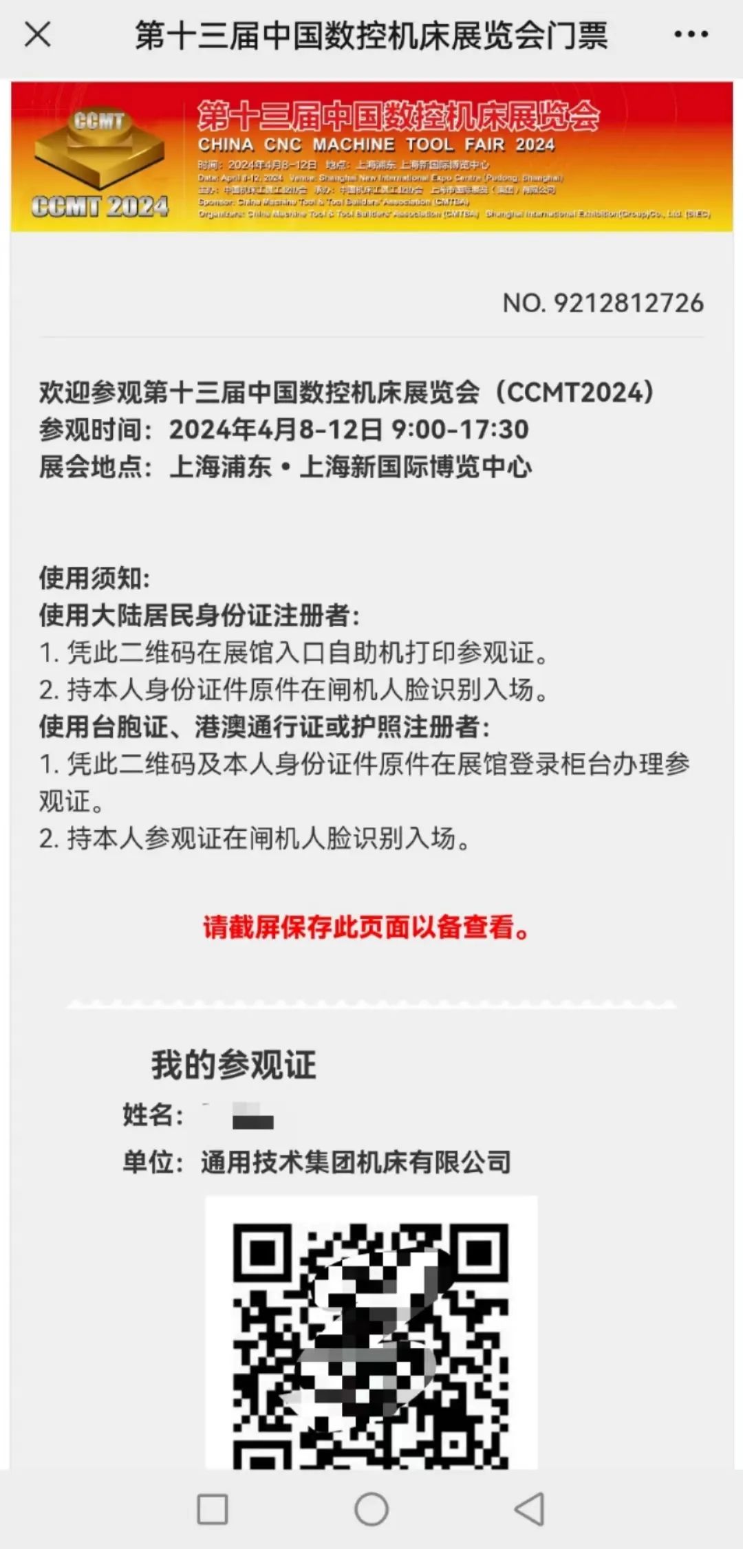 完成上述步驟,填寫相關(guān)信息并提交,即可獲得展覽會(huì)電子門票。請(qǐng)截圖保存,或攜帶身份證原件到現(xiàn)場(chǎng)入口處核驗(yàn)。