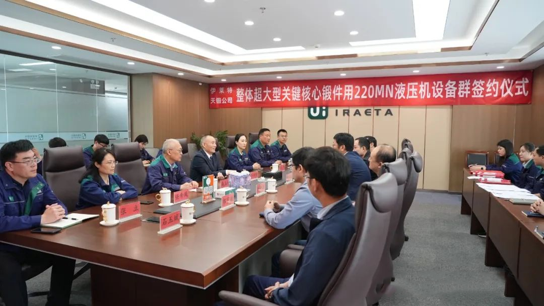 4月29日,公司總經(jīng)理、黨委副書記劉林志代表公司與伊萊特股份簽訂了全球最大自由鍛液壓機(jī)設(shè)備群訂單。