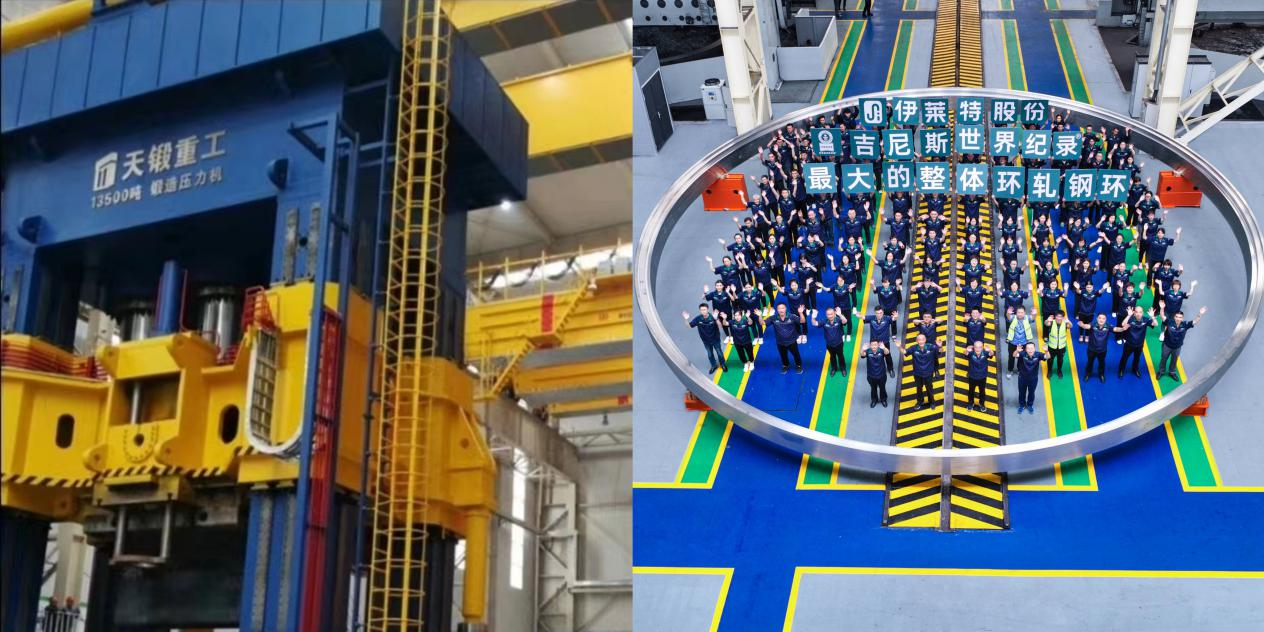 公司與伊萊特股份有著多年的深度合作,2022年8月5日,伊萊特股份使用公司提供的135MN鍛造裝備進(jìn)行鍛造制坯,最終生產(chǎn)出的“乾坤圈”被吉尼斯認(rèn)證官們認(rèn)證為世界最大的整體環(huán)軋鋼環(huán)。