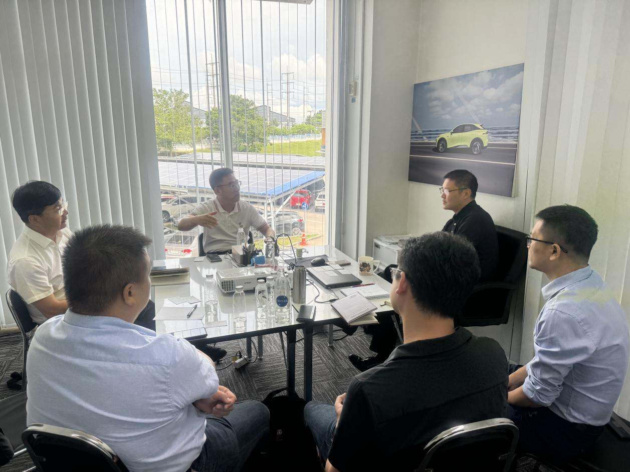 公司領(lǐng)導(dǎo)一行在泰國調(diào)研期間,先后赴客戶企業(yè)宏鑫科技、長安汽車的泰國工廠參觀交流,了解客戶企業(yè)泰國工廠建設(shè)進(jìn)度,溝通對公司有關(guān)設(shè)備的使用情況和后續(xù)需求計(jì)劃,交流有關(guān)工作安排,探討進(jìn)一步深入合作的思路與安排。
