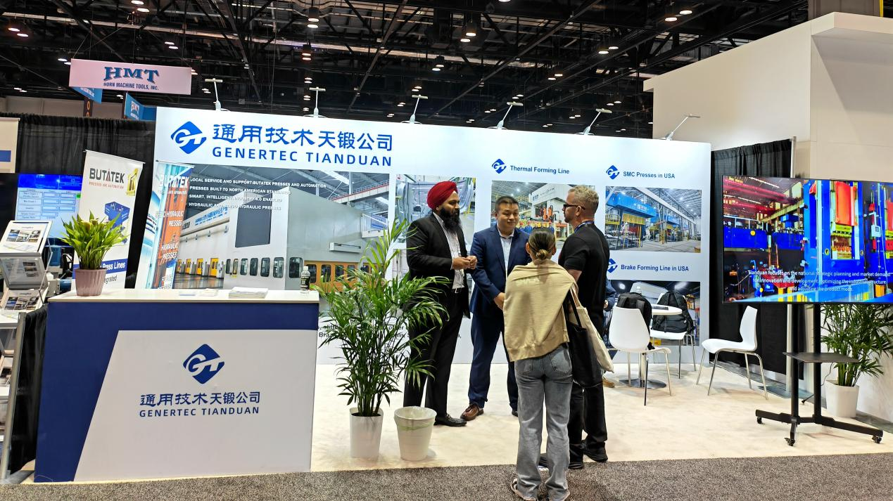 參觀者對(duì)公司的全伺服節(jié)能型成形機(jī)床和智能化成套生產(chǎn)線表現(xiàn)出濃厚興趣。公司副總經(jīng)理王世明和市場(chǎng)營(yíng)銷部北美大區(qū)負(fù)責(zé)人與來自世界各地的專業(yè)人士進(jìn)行了深入的技術(shù)探討和工藝論證。通過展會(huì)的溝通,不僅加深了國(guó)外客戶對(duì)天鍛公司綜合實(shí)力的了解,也為公司后續(xù)的北美市場(chǎng)拓展和國(guó)際合作奠定了良好基礎(chǔ)。
