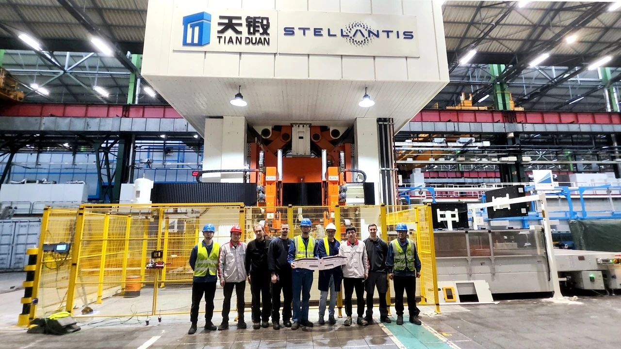 當(dāng)?shù)貢r間11月28日,公司為Stellantis集團西班牙VIGO工廠提供的12000kN復(fù)合驅(qū)動熱成形壓力機自動化生產(chǎn)線完成安裝調(diào)試,并順利實現(xiàn)首件試制成功。這是公司為Stellantis集團提供的第5條生產(chǎn)線。