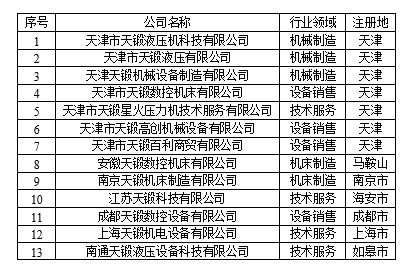 我公司在此鄭重聲明,以下公司與我公司及我公司下屬公司無任何隸屬或股權(quán)關(guān)系,同時也不存在任何投資等關(guān)系,其一切行為均與天鍛公司無關(guān):