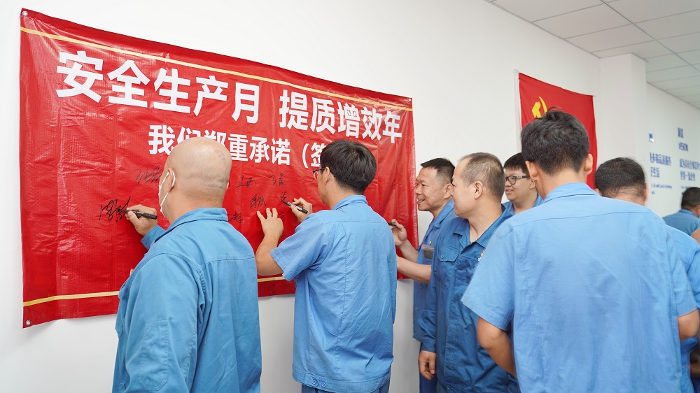 最后黨員們在“安全生產(chǎn)月 提質(zhì)增效年”橫幅上簽字,并做出鄭重承諾:從我做起,安全無小事,時刻敲響“隱患就是事故”的警鐘!