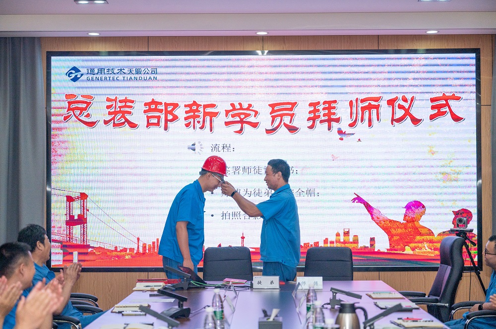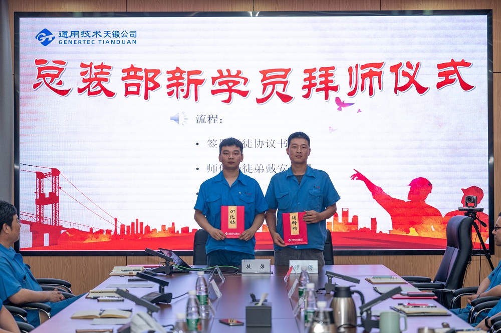 支部舉行了新員工“拜師”儀式。新學(xué)員與導(dǎo)師在《師徒協(xié)議書》上鄭重簽字,徒弟向師傅鞠躬施禮,師傅為徒弟佩戴安全帽并贈言勉勵。
