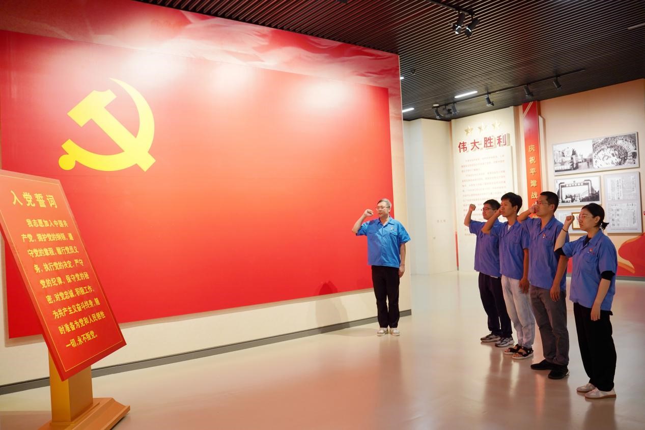 會后,大家集體參觀了平津戰(zhàn)役紀(jì)念館,面對鮮紅的黨旗舉行了入黨宣誓儀式。