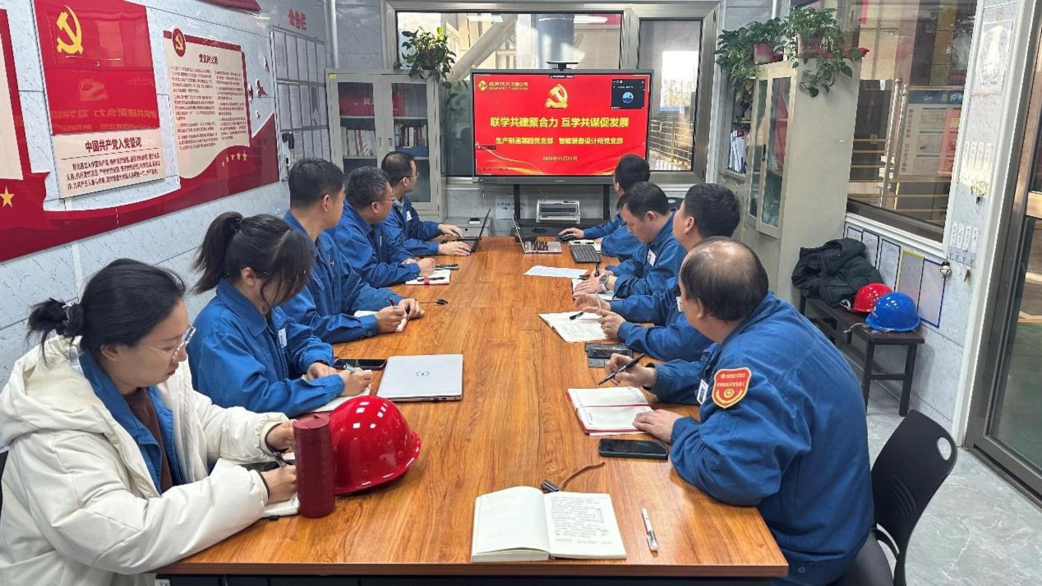 11月21日,智能裝備設(shè)計(jì)所黨支部與生產(chǎn)制造第四黨支部開(kāi)展以“聯(lián)學(xué)共建聚合力 互學(xué)共謀促發(fā)展”為主題的聯(lián)學(xué)共建活動(dòng)。雙方黨支部充分發(fā)揮黨建引領(lǐng)作用,推動(dòng)黨建業(yè)務(wù)融合發(fā)展,就Stellantis、博俊、屹豐等重點(diǎn)項(xiàng)目在設(shè)計(jì)制造、安裝調(diào)試過(guò)程中出現(xiàn)的問(wèn)題進(jìn)行了深入探討,為后續(xù)熱成形壓力機(jī)質(zhì)量提升、順利交付奠定良好基礎(chǔ)。雙方黨支部將以此次活動(dòng)為契機(jī),進(jìn)一步加強(qiáng)交流合作,攜手并進(jìn),提質(zhì)增效,努力實(shí)現(xiàn)黨建工作與業(yè)務(wù)工作雙融雙促。